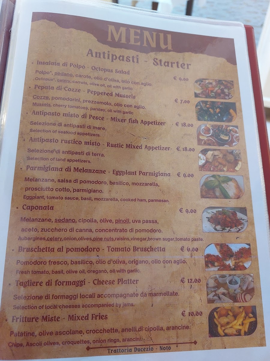 Introducing the Menu at Trattoria Ducezio Noto